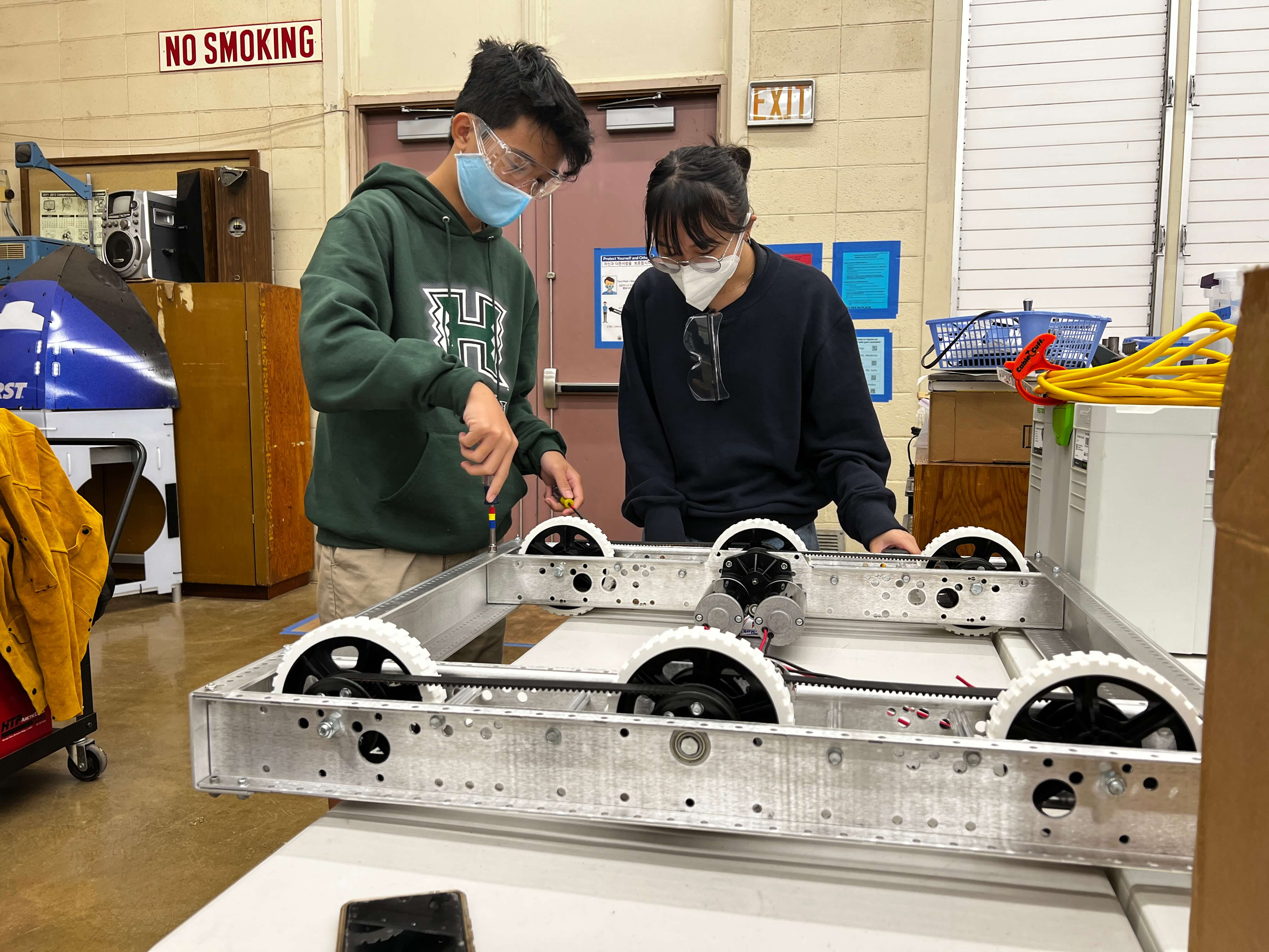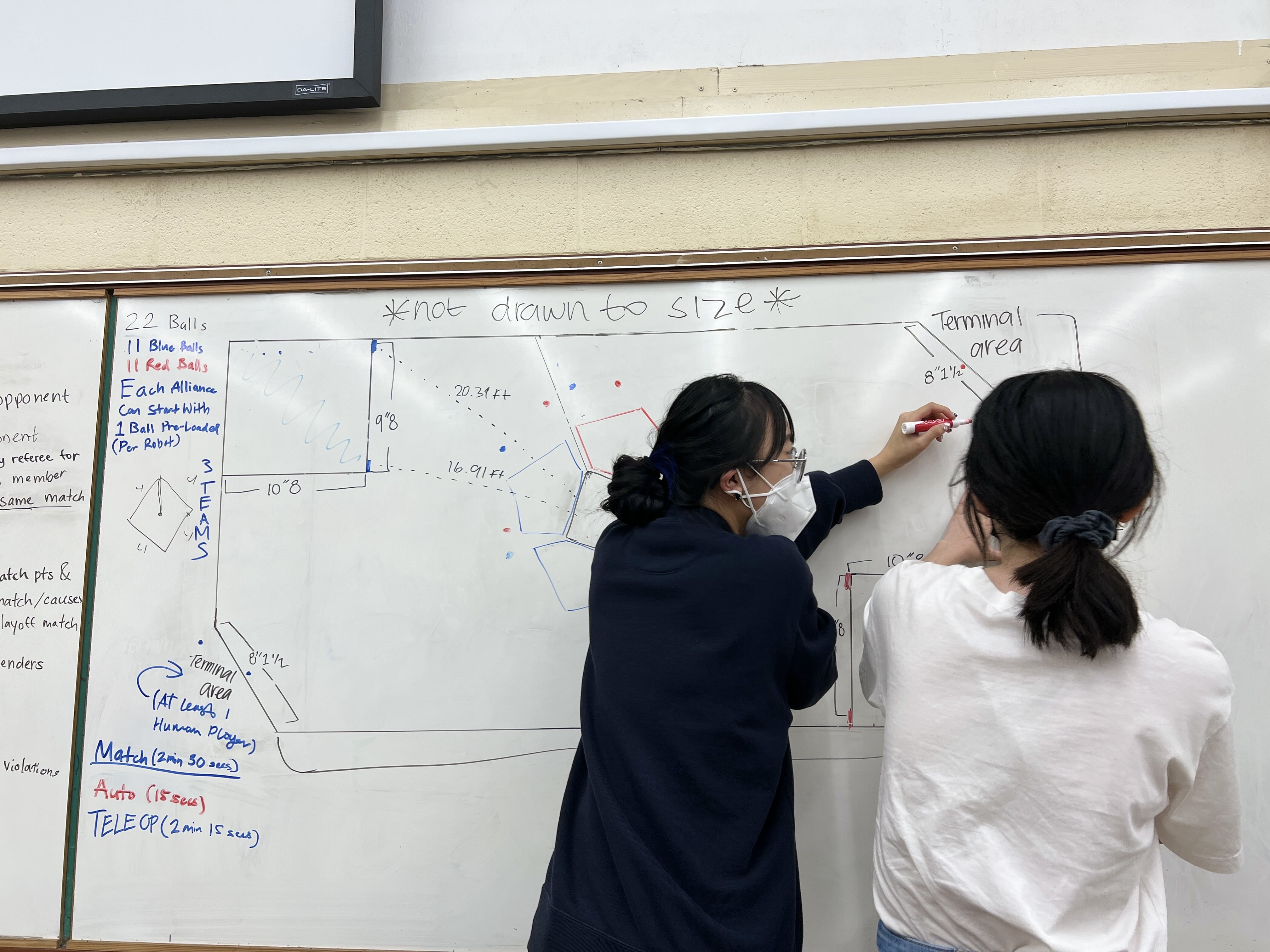 Following Kickoff, and the unveiling of this year’s theme: RAPID REACT, our team got to work! Over the course of this first week, we discussed and studied the rules, put together a practice chassis, and began to prepare parts of the field elements. Our electrical team practiced the fundamentals of C++ and Java using the Romi robots, and our mechanical team practiced using CAD.